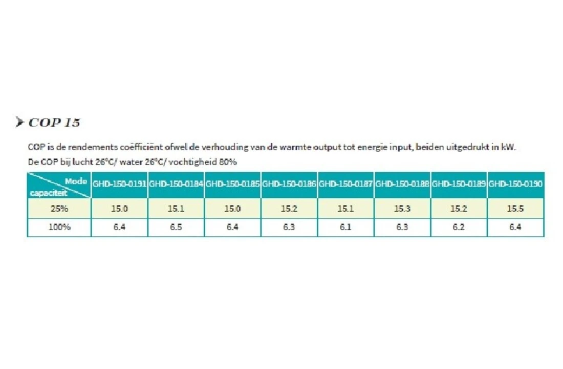• Hogere verwarmingscapaciteit: de COP (prestatie coëfficiënt) neemt met 2 tot 3% toe