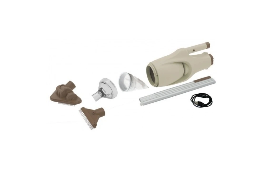 - Omvat twee verwisselbare koppen: draaibaar zuigkop met onderzijde borstels om oppervlakken te reinigen