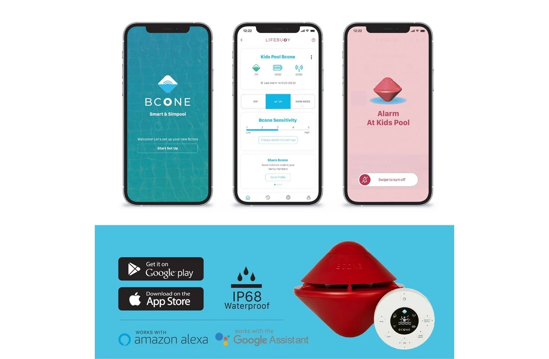 Het BCONE-systeem bestaat uit een zwembadunit, een home unit en een smartphone app.